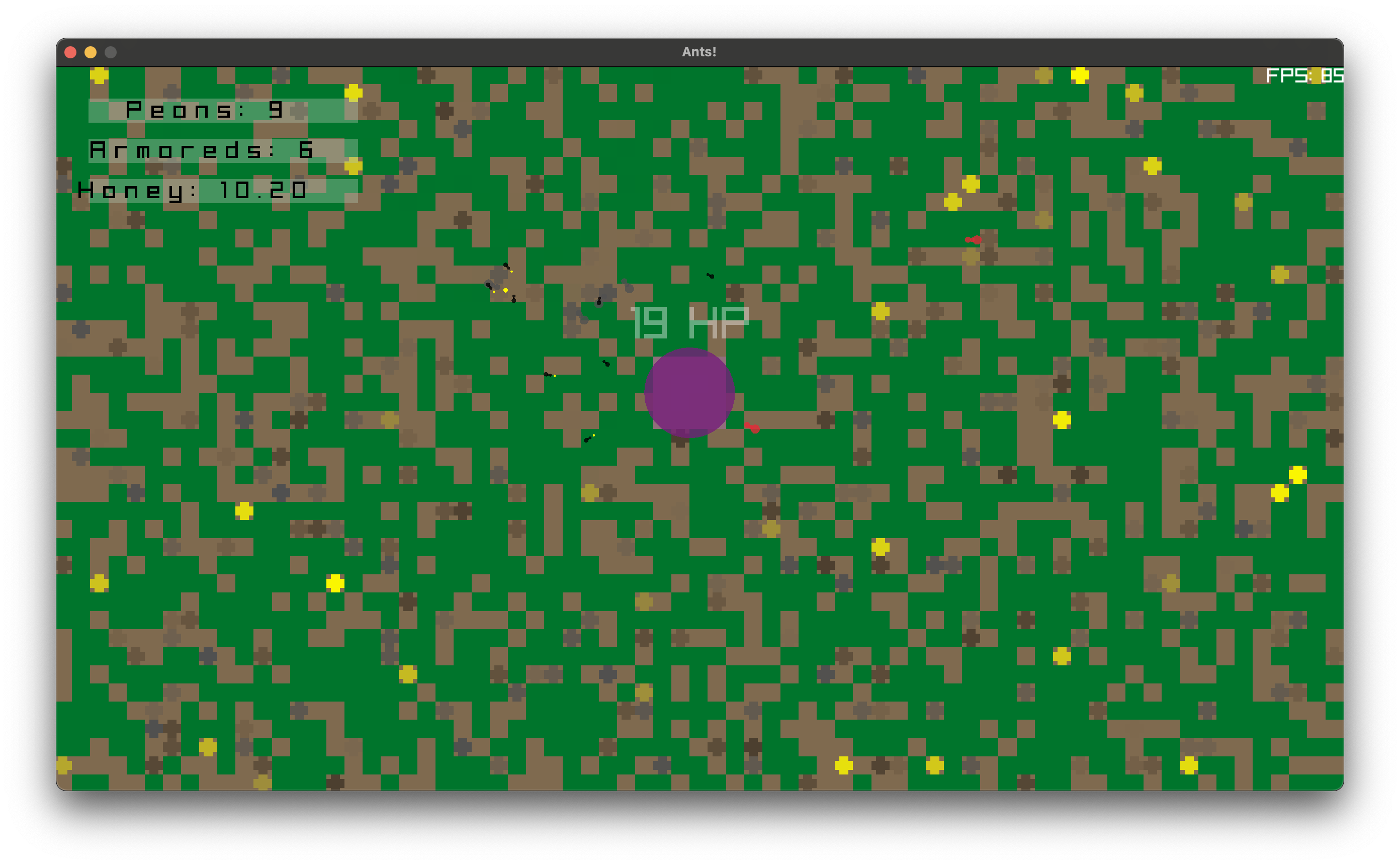 The idea is to make an ant simulation where the ants act almost as towers in a tower defense scenario, and you are fighting against other invaders (ants, bees, etc.) I've uploaded a macOS binary as I don't have time to do anything else ðŸ¤